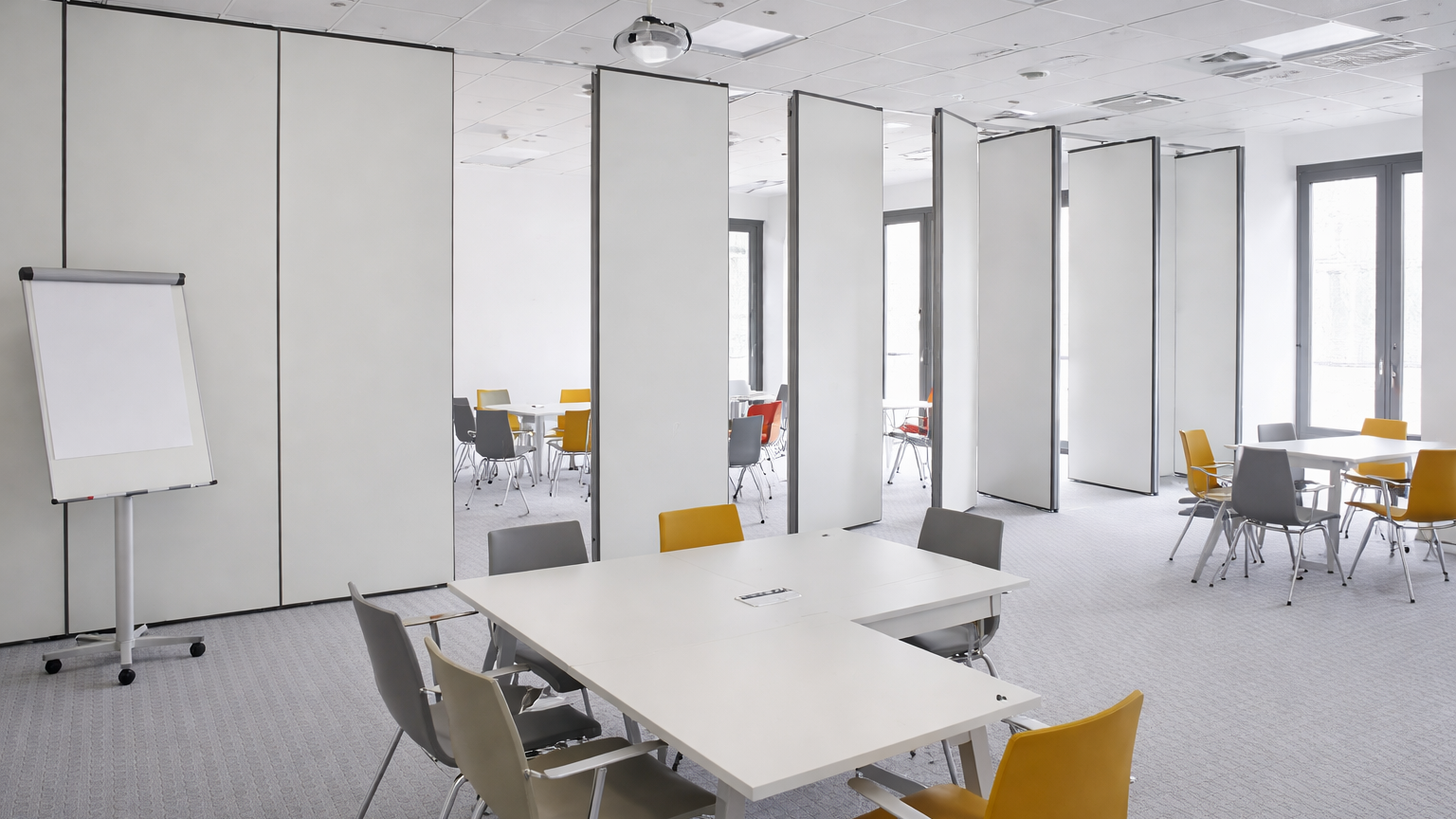Partition systems creating private functional spaces with clean aesthetics and layout flexibility.